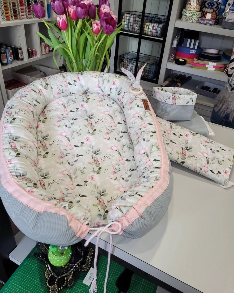 Dieses gemütliche und beruhigende Babynestchen ist perfekt für Babys in den ersten Lebensmonaten, denn das Nest vermittelt ein Gefühl der Sicherheit und Geborgenheit, wie im Bauch der Mami. Geeignet für Babys von 0- ca 6 Monate, je nach Grösse des Babys. Unten offen kann es auch als Wickelunterlage benützt werden. Es besteht aus 100%Öko-Tex Standard Baumwolle. (auch in GOTS Qualität erhältlich). Das Nestchen ist ideal für Reisen oder bei Besuch bei Freunden/Familie. Es bietet die gewohnte Umgebung und Gerüche und dein Baby kann so entspannter schlafen. Preis ab 105,- Euro
